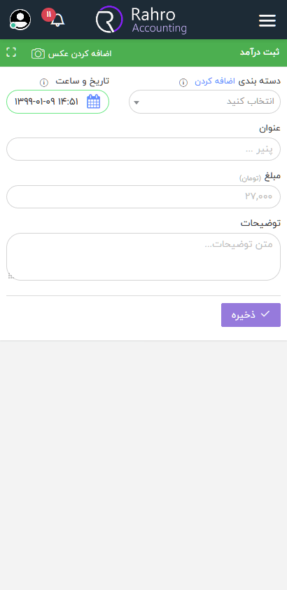 شما میتوانید درآمد های خود را در این قسمت ثبت نموده و بر روی خرج و مخارج خود نظارت نمود.