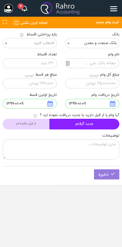 در رهرو میتوانید برای وام و هر قسطی که پرداخت میکنید یک عکس مربوطه اضافه نمایید.
