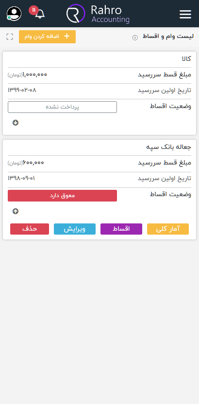 بسیار راحت میتوانید اقساط و وام های خود را حذف و یا ویرایش و اضافه کنید.